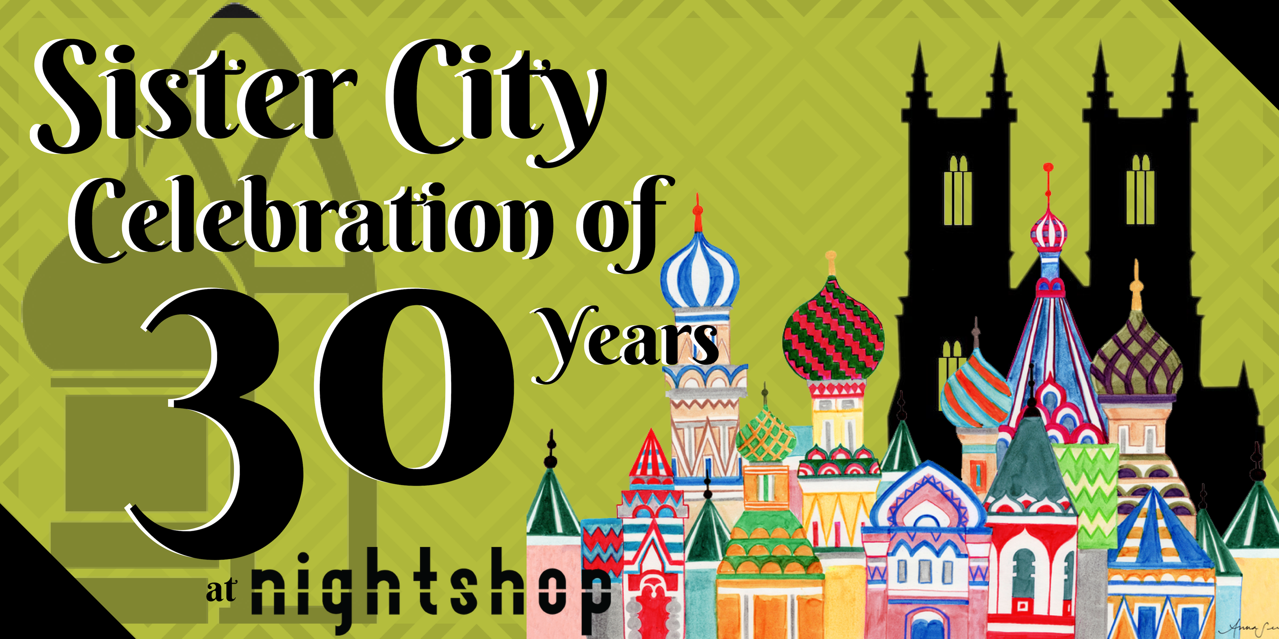The Vladimir-Canterbury Sister City Association is celebrating its 30th anniversary! Join us at nightshop on April 3 from 6:00-8:30 p.m. for an evening of food, music, and conversation as we toast the past and future 30 years. Honored guests will include founders from Vladimir, Russia; Canterbury, England; and Bloomington-Normal who were instrumental in fostering this unique tri-city sisterhood. Enjoy tastes inspired by the flavors and traditions of our international partners, and sounds provided by Glenn Wilson (Professor of Music at Illinois Wesleyan University) and company. Cocktail attire required.